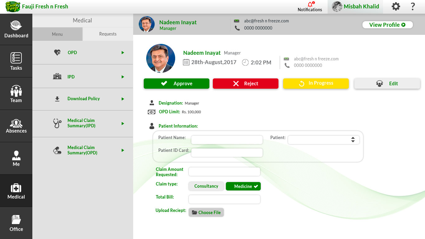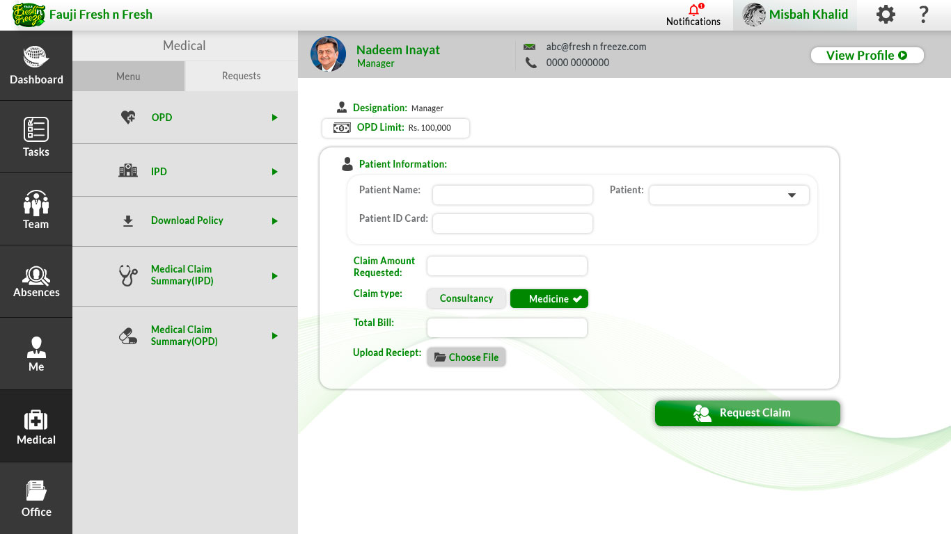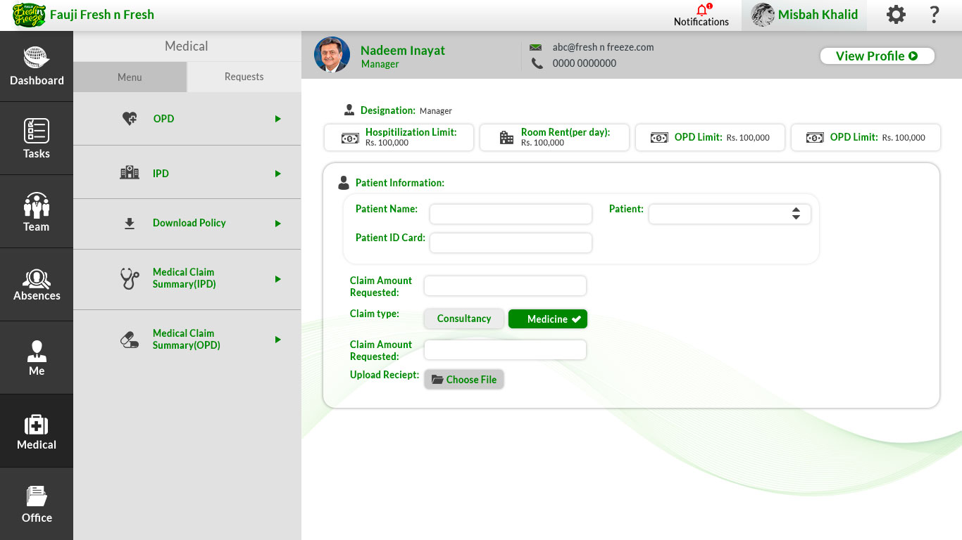 I designed the user interface for the HRMS portal of Fauji Fresh and Freeze, focusing on efficiency, clarity, and usability. The portal provides an intuitive experience for managing HR functions, streamlining employee records, attendance, and performance tracking with a clean and modern design tailored to the organization’s needs.